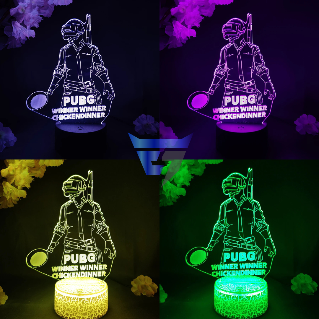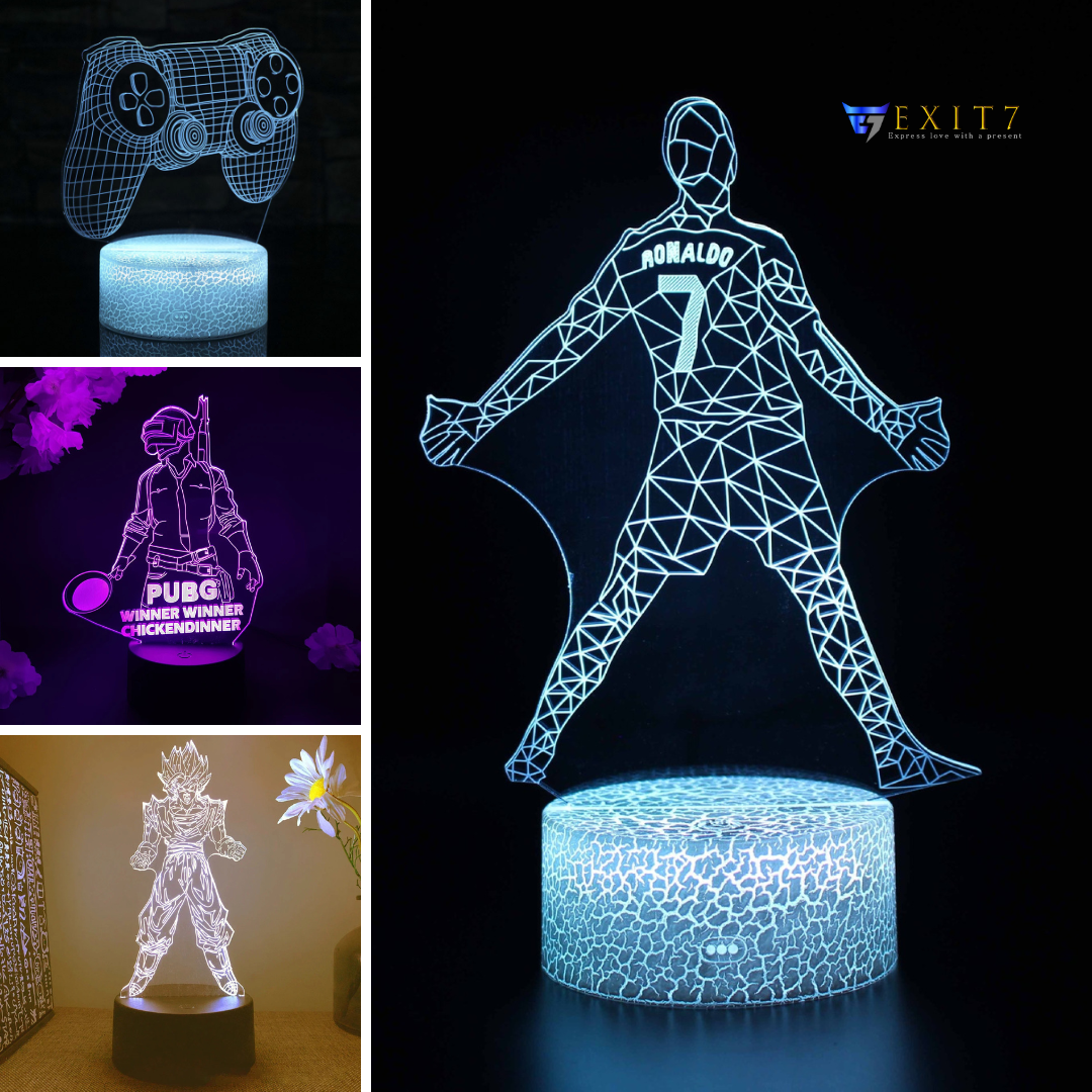 Light up your room with this Acrylic 3D Lamp Illusion, featuring stunning LED lighting and eye-catching designs. Choose from popular styles like Ronaldo, PUBG Winner Winner Chicken Dinner, Goku, or Gamepad.